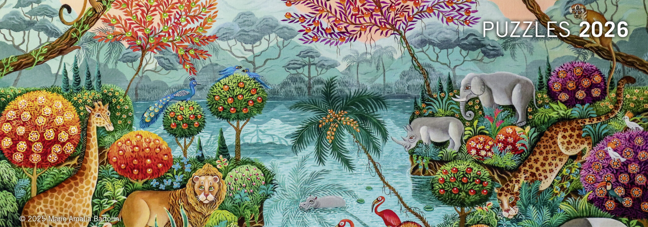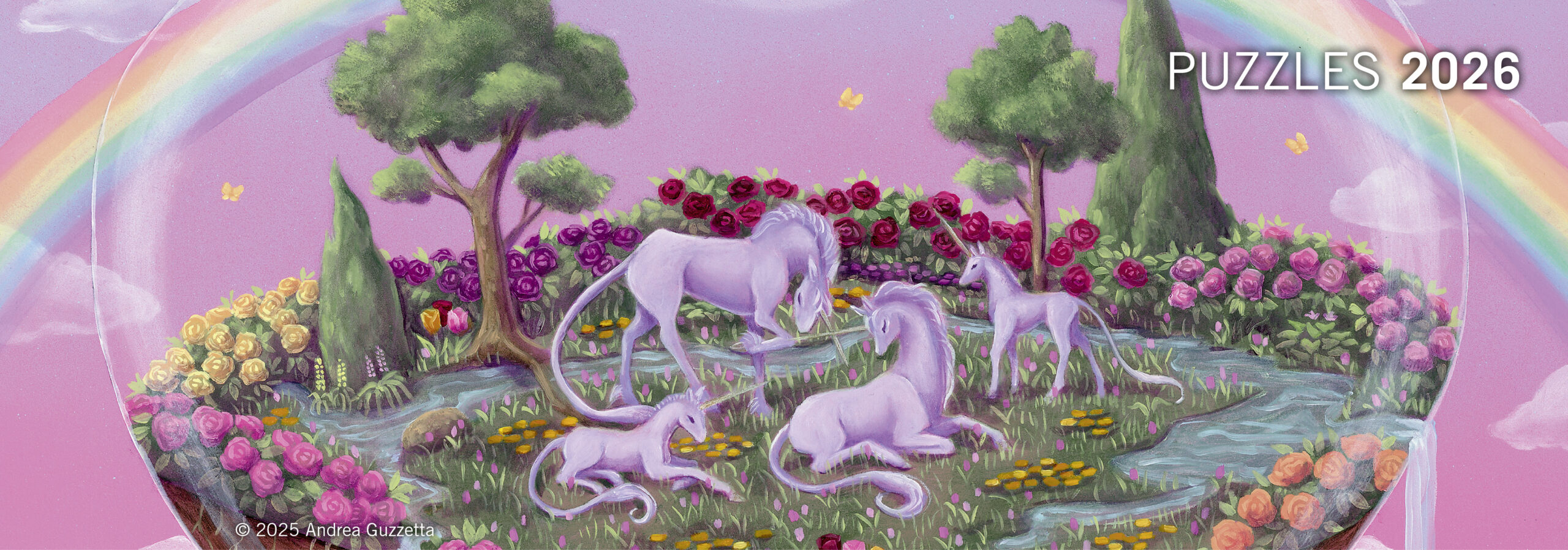 Love! Peace! Happiness! In the utterly adorable fantasy world of American artist Andrea Guzzetta, all living beings are free, cheerful, and peaceful. A wonderful role model, then — and a place you’ll want to puzzle yourself into!