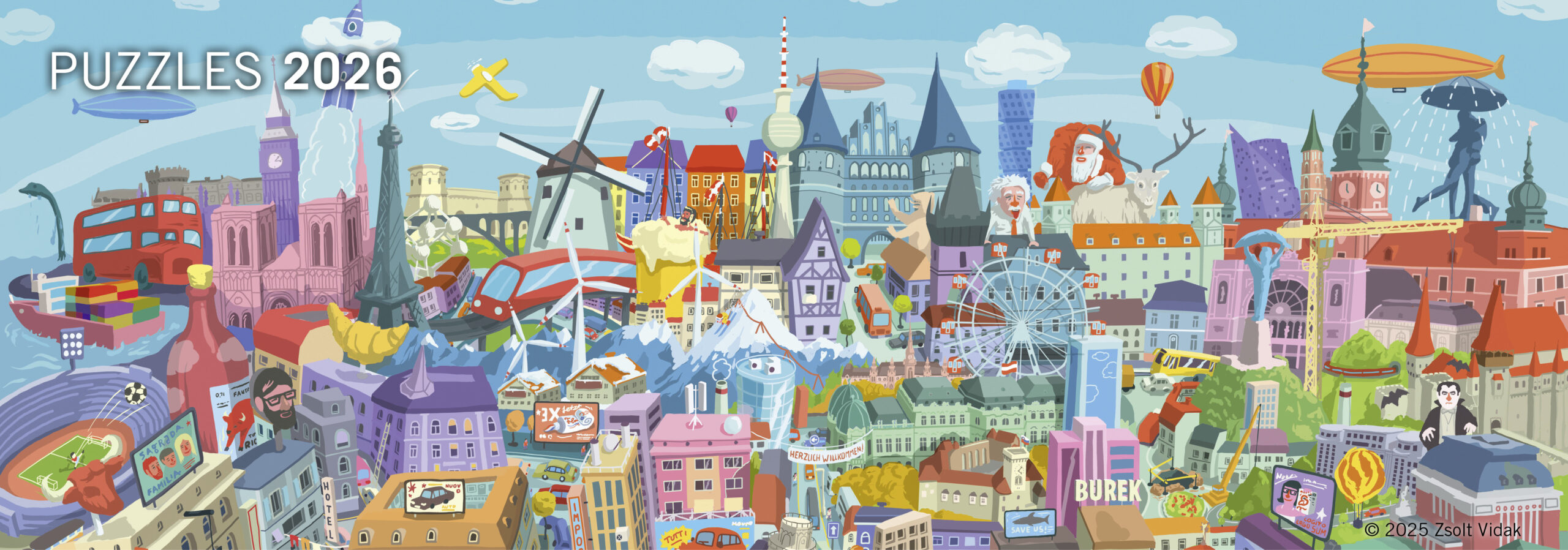 Good old Europe deserves to be celebrated once again! And there’s no better way to do it than with the new puzzle by Zsolt Vidak, who, when he’s not winning awards for his work or designing stamps for the Hungarian postal service, exhibits his art all over the world.