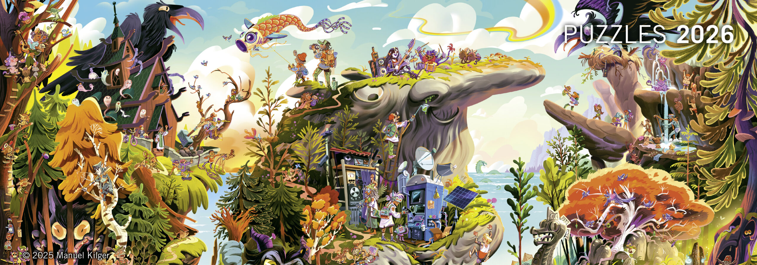 The German artist Christoph Steyer is part of the label Superfreunde, which he founded with a fellow illustrator. Through graffiti — including in public swimming pools — he found his way into illustration, and through the Leipzig Book Fair into puzzling.